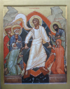 |  Verrijzenis. Résurrection Karmelieten Berchem. Pères Carmélites, Berchem (Anvers). 60 X 45 cm |  Verrijzenis. Résurrection detail, détail |  Verrijzenis. Résurrection parochie St. Paulus, Gent. Paroisse aint Paul, Gand. 80 X 60 cm. 2006 |  Verrijzenis. Résurrection detail, détail |  De verrijzenis. Icône de la Résurrection Abdij maria Toevlucht ZUndert. Abdij Maria Toevlucht Zundert. Abbaye Maria Toevlucht des pères trappistes, Zundert, Hollande