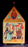 Feestdagiconen. Icônes festives| | | | | |  De boodschap, Gabriël. L'Annonciation, Gabriel Linkse orgeldeur. Porte gauche d'un orgue 56 X 42 private cillectie. Collection privée |  De boodschap, De Moeder Gods. L' Annonciation, La Mère de Dieu Rechtse orgeldeur, Porte droite d' un orgue 56 X 42 cm Private collectie. Collection privée |  De Boodschap. Icône de l' Annonciation 45 X 36 cm. Private collectie. Collection privée |  icoon van de Geboorte van de Heer. Icône de la Nativité Abdij Maria Toevlucht Zundert. Abbaye Maria Toevlucht des pères trappistes, Zundert, Hollande 72 X 54 cm |  icoon van de Geboorte van de Heer 30 X 40 cm. Particulier bezit. 2011 |  De Geboorte. Icône de la Nativité 40 X 30 cm. 2011. Private collectie. Collection privée |  De Geboorte. Icône de la Nativité detail. Détail |  De Geboorte. Icône de la Nativité Detail. Détail |  icoon van de transfiguratie. Icône de la Transfiguration Abdij Maria Toevlucht Zundert. Abdij Maria Toevlucht Zundert. Abbaye Maria Toevlucht des pères trappistes, Zundert, Hollande