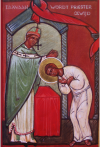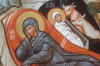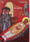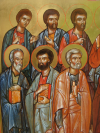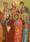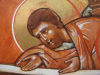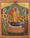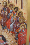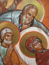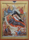 |  De Dormitio, La dormition 64 X 48 cm. Abdij Sint Sixtus Westvleteren, Abbaye Saint Sixte Westvleteren, 2014 |  de Dormitio. La Dormition detail. Christus. Détail, le Christ |  de Dormitio. La Dormition Detail, détail |  De Dormitio, La Dormition Detail, Détail |  De synaxis van de Apostelen. La synaxe des Apôtres Abdij Maria Toevlucht Zundert. Nederland. Abbaye des pères trappistes, Zundert, Hollande. 72,5 X 58 cm. 2013