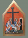 72 X 54 cm |  De verrijzenis. La Résurrection 20 X 16 cm, 2005, Abdij Koningshoeven, Tilburg, Nederland. Abbaye des pères trappistes, Koningshoeven, Tilburg, Hollande |  De verrijzenis. Icône de la Résurrection 32,5 X 26 cm 2011. Private collectie. Collection privée |  De verrijzenis. Icône de la Résurrection 60 X 45 cm Private collectie. 2010. Collection privée |  De verrijzenis, detail. La Résurrection, détail 60 X 45 cm Private collectie 2010. Collection privée |  Hemelvaart. L' Ascension 80 X 60 cm. Abdij Maria Toevlucht Zundert.Nederland. Abbaye des pères trappistes, Zundert, Hollande. 80 X 64 cm. 2013