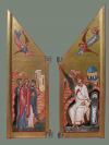 |  Verrijzenis. Résurrection Karmelieten Berchem. Pères Carmélites, Berchem (Anvers). 60 X 45 cm |  Verrijzenis. Résurrection detail, détail |  Verrijzenis. Résurrection parochie St. Paulus, Gent. Paroisse aint Paul, Gand. 80 X 60 cm. 2006 |  Verrijzenis. Résurrection detail, détail |  De verrijzenis. Icône de la Résurrection Abdij maria Toevlucht ZUndert. Abdij Maria Toevlucht Zundert. Abbaye Maria Toevlucht des pères trappistes, Zundert, Hollande